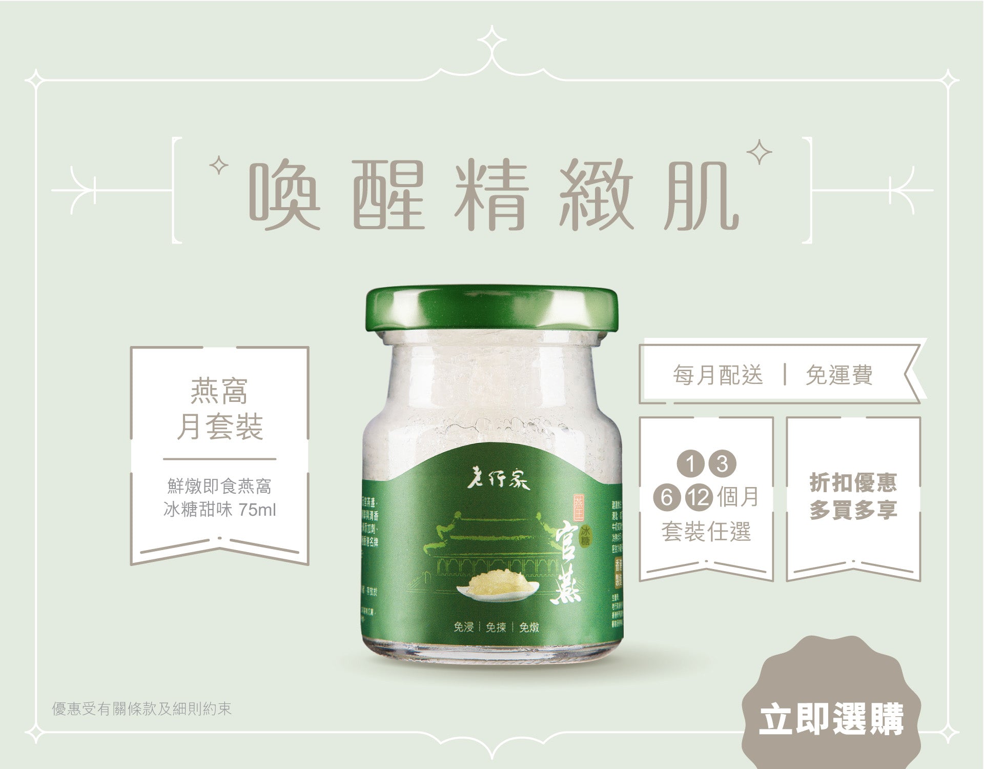 💫內在調養才是讓肌膚逆生長的關鍵 ! 老行家燕窩月套裝,讓你從小瓶裝鮮燉燕窩開始,做好內在保養。