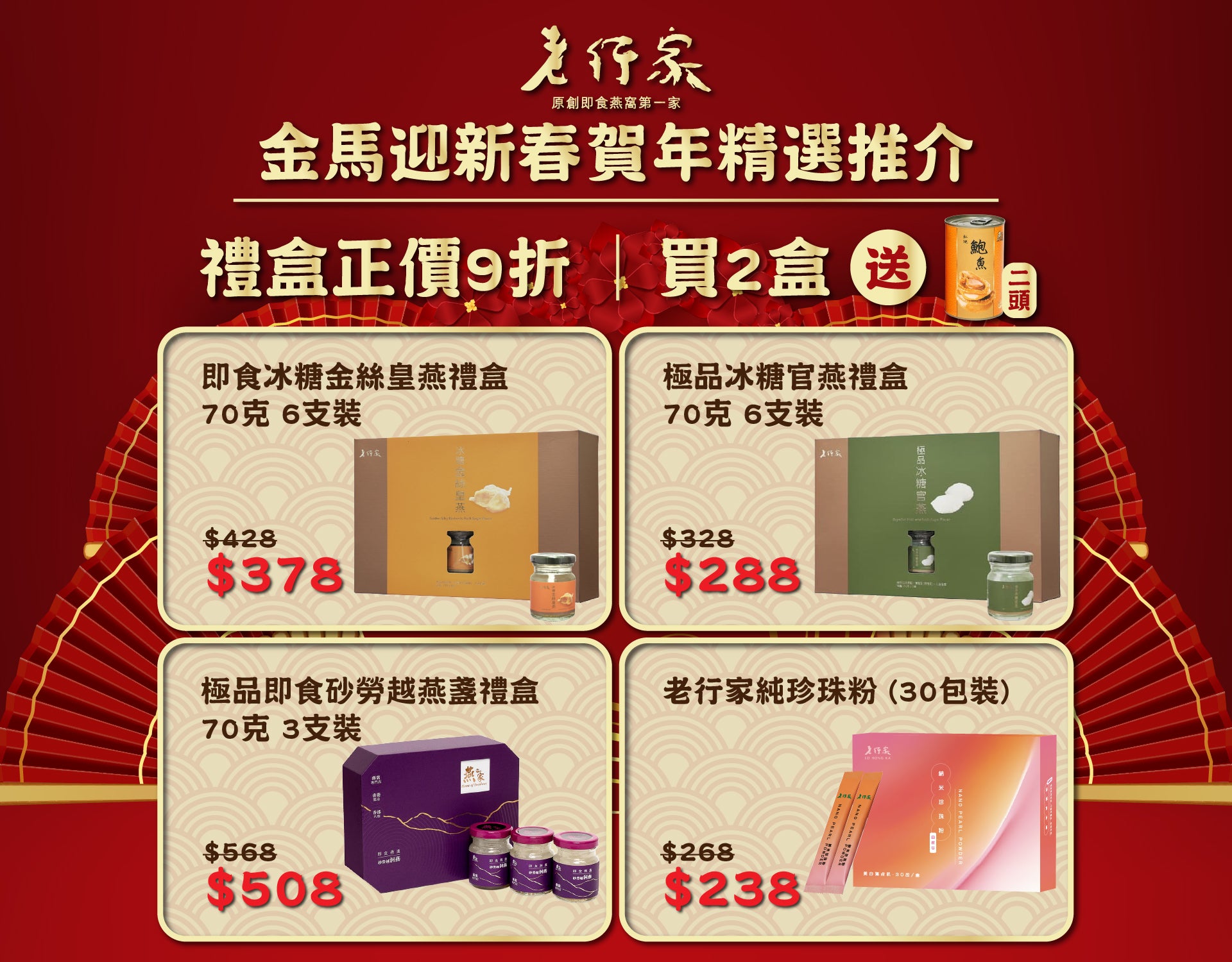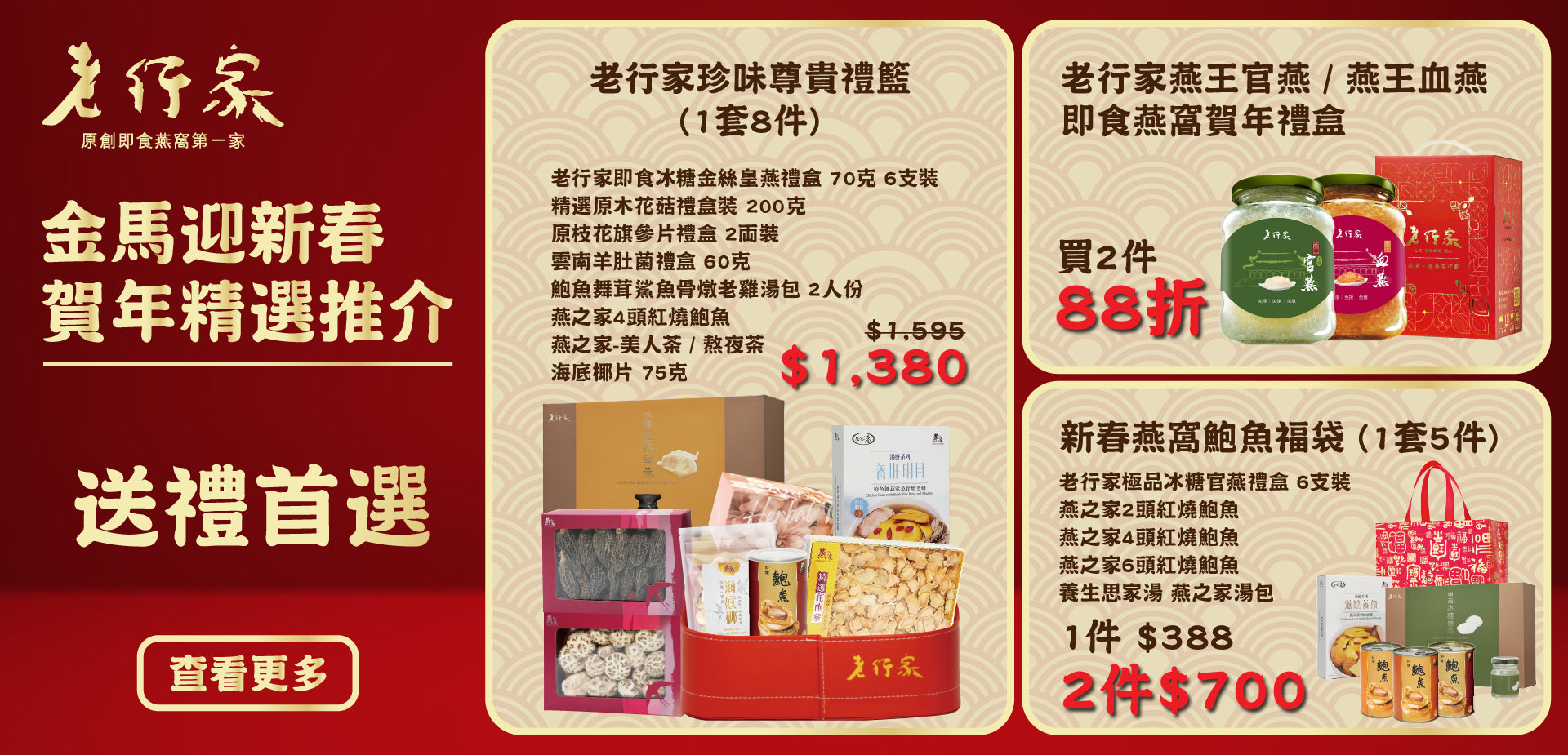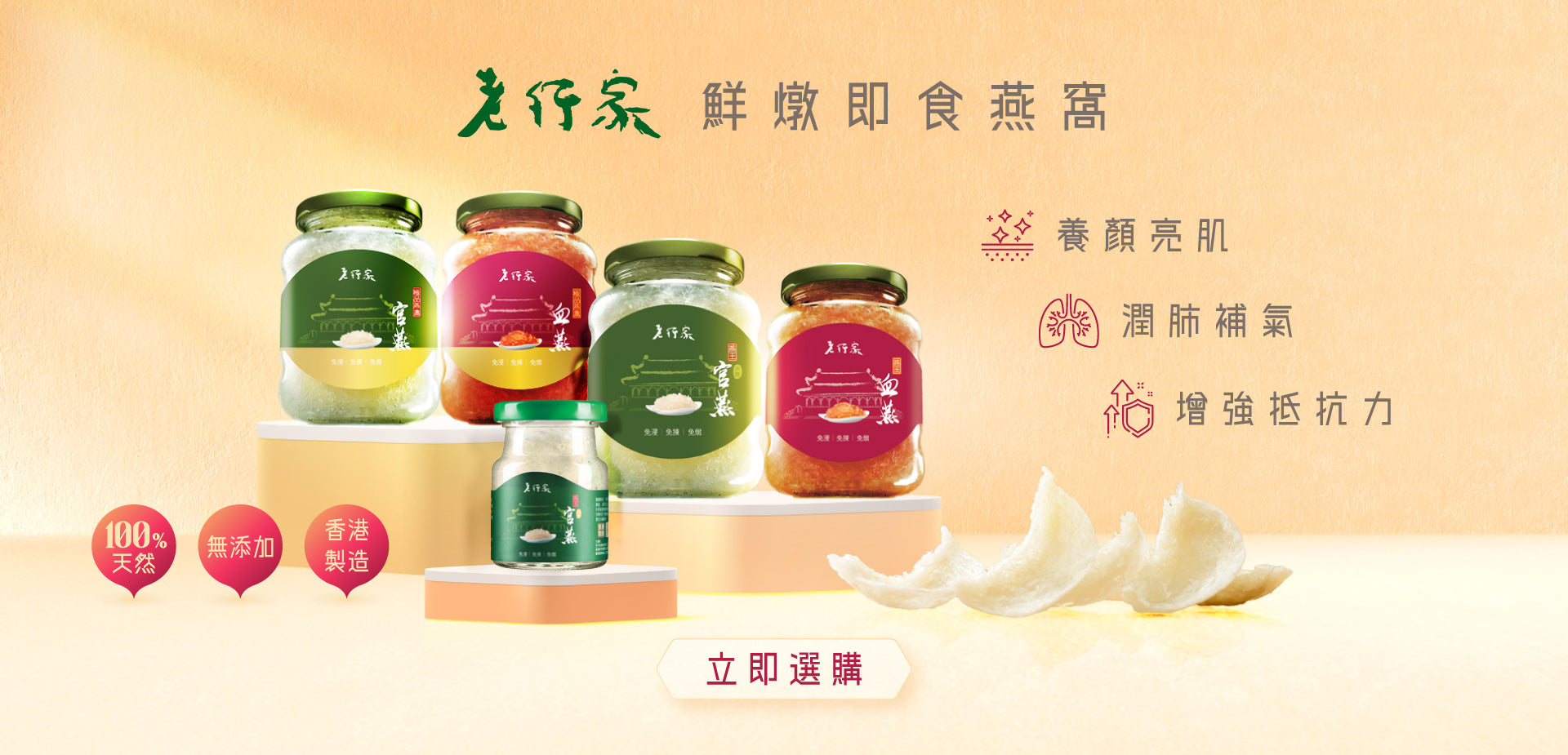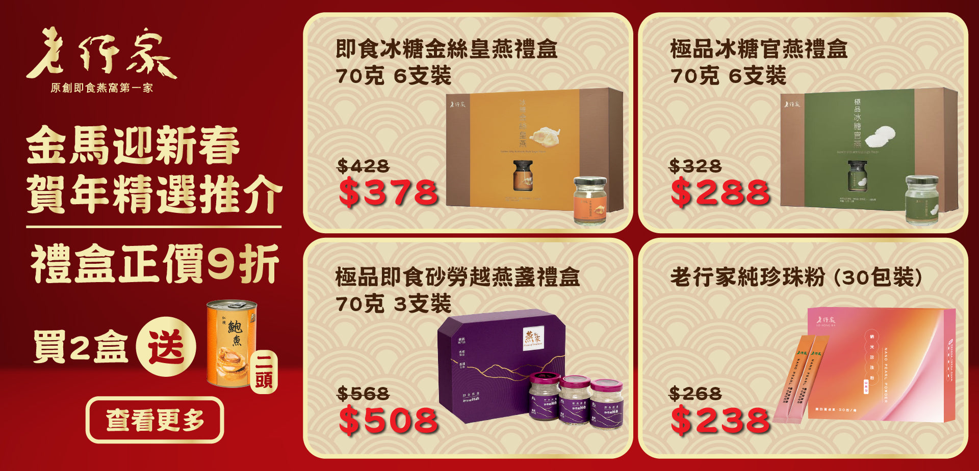 燕窩的健康元素:含豐富膠原蛋白、多種胺基酸及微量元素等,有助促進細胞再生,增加肌膚彈性,有助抗衰老 ; 高含量珍貴成份燕窩酸,有助提高人體免疫力 ; 中醫角度,滋陰潤肺,補而不燥,滋養身體無負擔。-------------------------------月套裝送貨安排及細則‧ 每次送貨最少10瓶(1個月份量)‧ 首一個月會按您選定的日子送貨,其後每月會有專人聯絡安排送貨‧ 月套裝僅限送貨,不設自取‧ 訂單確認後,恕不接受任何形式的更改或退款‧ 已購買但未送出之貨品恕不接受以其他產品取代,包括現金券、禮券、或現貨形式產品‧ 如有任何爭議,老行家(香港)有限公司將保留最終決定權產品規格及注意事項容量:75毫升/支 (每支約3-4天份量)建議食用方法:早晚一湯匙,可加入豆漿、牛奶或其他甜點中食用,冷熱均可儲存方法:1-4°C冷藏,最佳保存期為一個月(依商品外包裝標示為主) 開瓶後需冷藏並於兩至三星期內食用完成份:頂級官燕、純水、冰糖由於管制即棄塑膠法例, 由4月1日起, 顧客於各網購平台購買即食燕窩類產品將不獲提供即棄塑膠餐具。